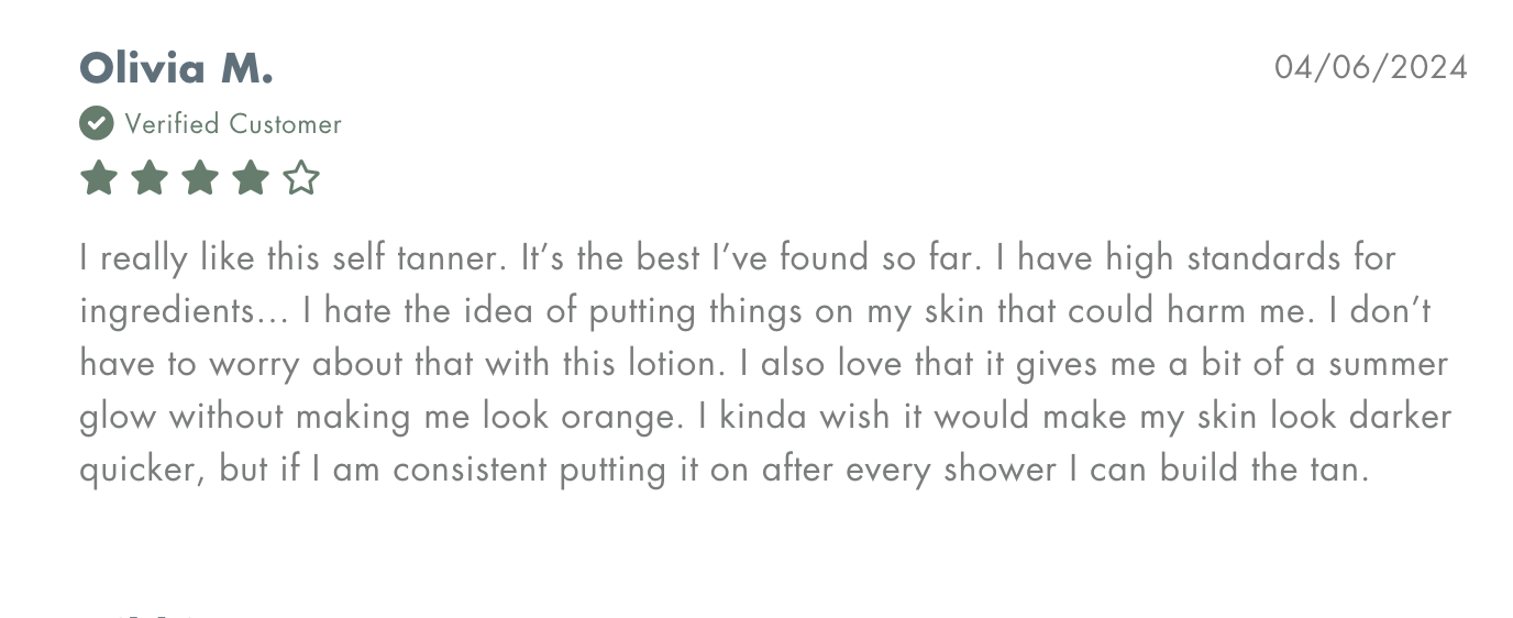 • ORGANIC, NATURAL TANNING: We use a natural Erythrulose (from fermented raspberries) to create a healthy self tanning lotion.
