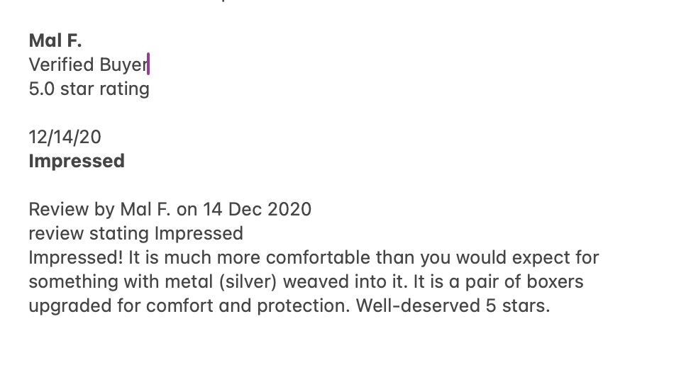 By weaving a mesh of silver micro fibres through our cotton underwear, we create an effective Faraday Cage which prevents up to 99% of all wireless EMF radiation from passing through. The same EMF-repelling silver fibers that line our boxers also make them odor-killing to prevent bad smells or dirtiness, and anti-bacterial to improve hygiene and health.